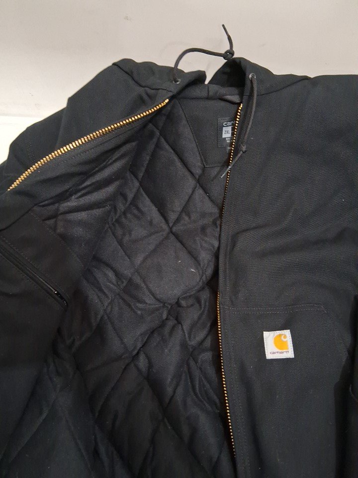 light threading on hood, light dirt/dust on jacket