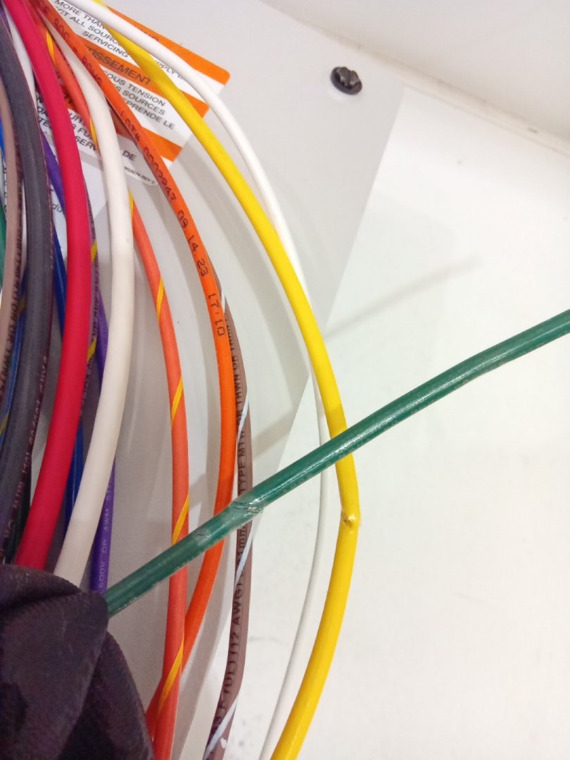 Item appears new but has a few notable issues: - There are light scratch/scuff marks on corners and sides from transport. - The green and yellow wire have some dents/nicks from pressure during transport. Please see photos. Please note we cannot test this item.
