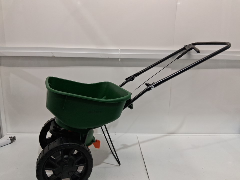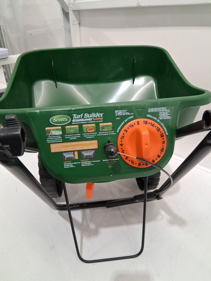 scotts foldable turf builder, edgeguard mini broadcast spreader/seeder - 5000 sq ft - green/black (model: lb15267)