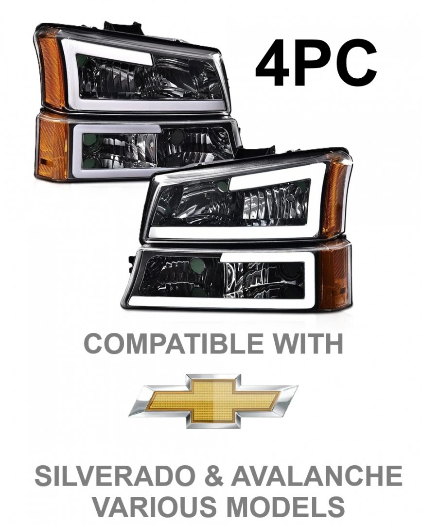 4PC PIT66 Led Headlights Compatible with Chevrolet Silverado & Avalanche Various Models - (Model: ‎02HLA4516DWT)