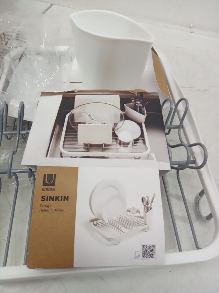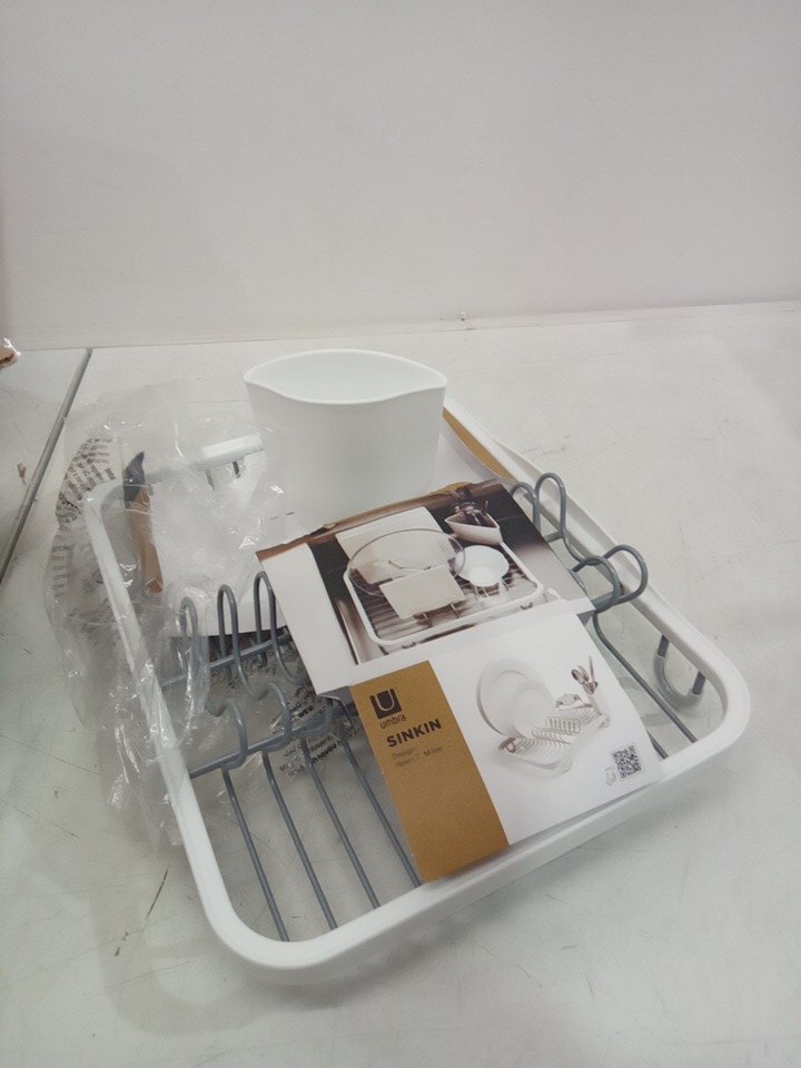 umbra sinkin dish drying rack with removable cutlery holder - white