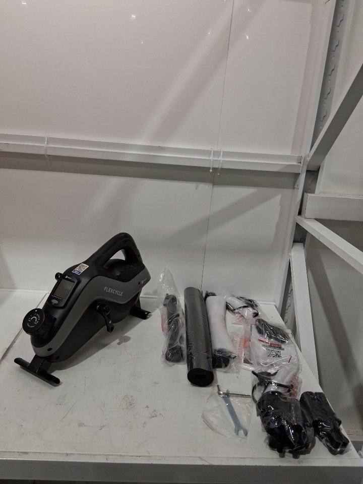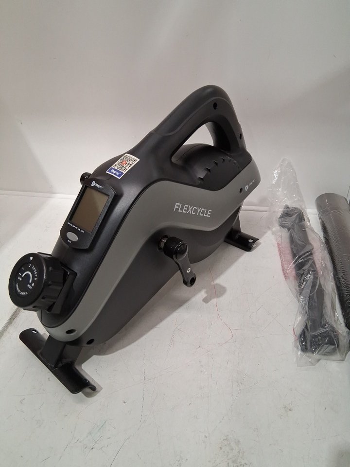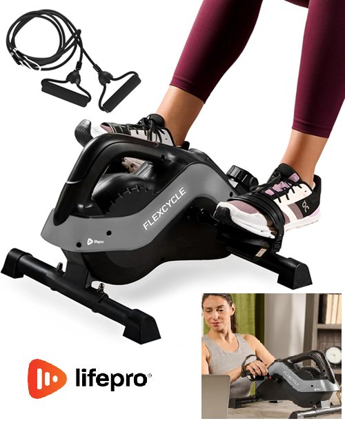 LIFE PRO UNDER DESK FLEXCYCLE STATIONARY MAGNETIC EXERCISE BIKE WITH LCD MONITOR & RESISTANCE BANDS FOR ARM & LEGS - grey/BLACK (MODEL: LP-FLXCPLS-gry)