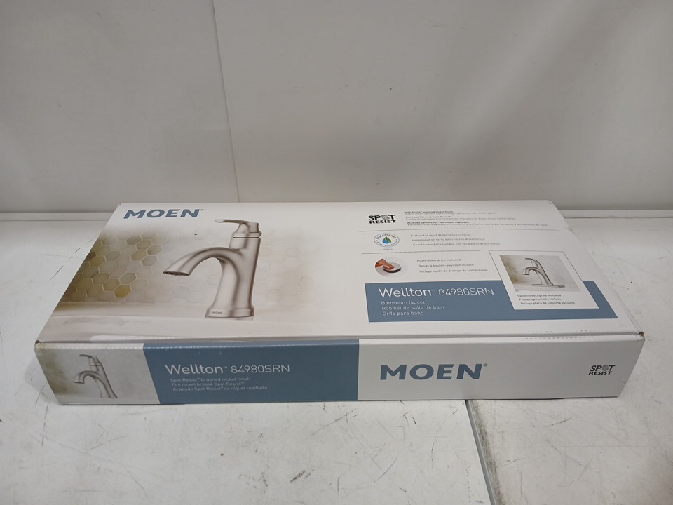 Moen Wellton One-Handle Center set Bathroom Sink Faucet - Brushed Nickel (model: 84980SRN)