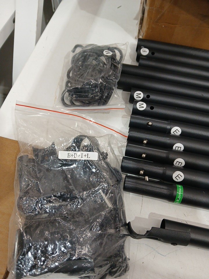 Some of the poles have some scratches and some minor debris/hair got onto the fabric. Box got wet but the parts do not appear affected.