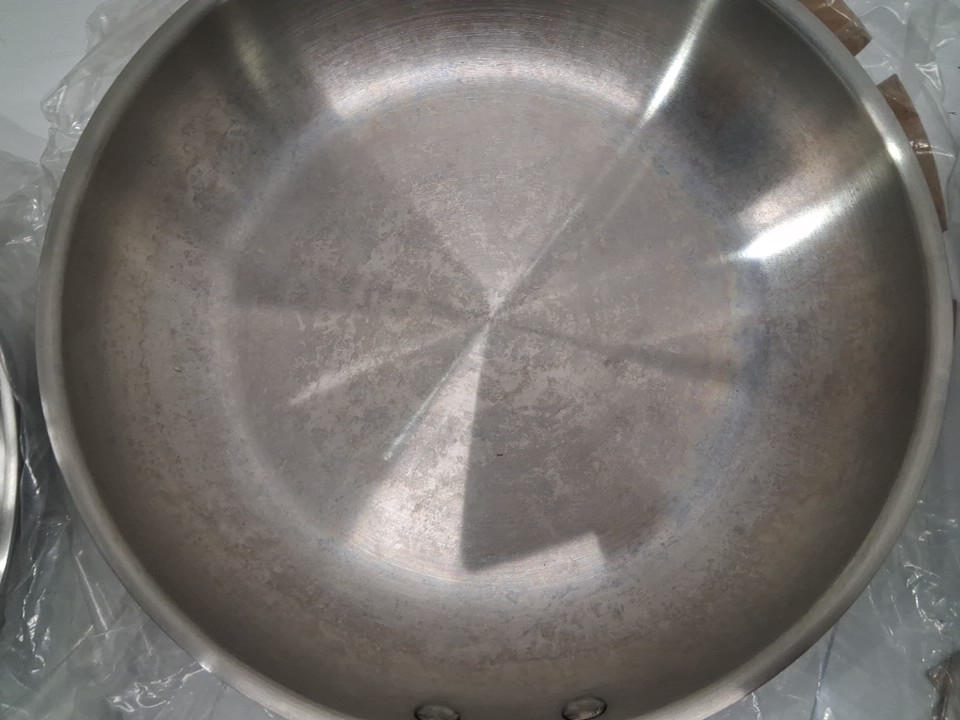 The 10" frying pan has been used, some discolouration and staining in pan from prior use (see photos)