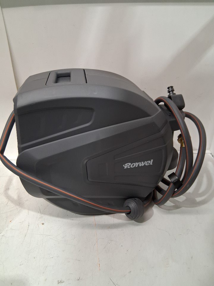 ROYWEL Retractable Garden Hose Reel with Pivot Bracket - 1/2-inch x 65ft - grey/orange (MODEL: ry-hr3565)