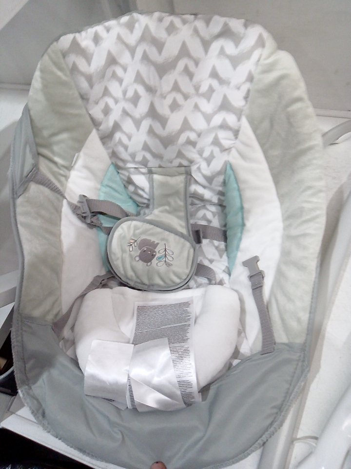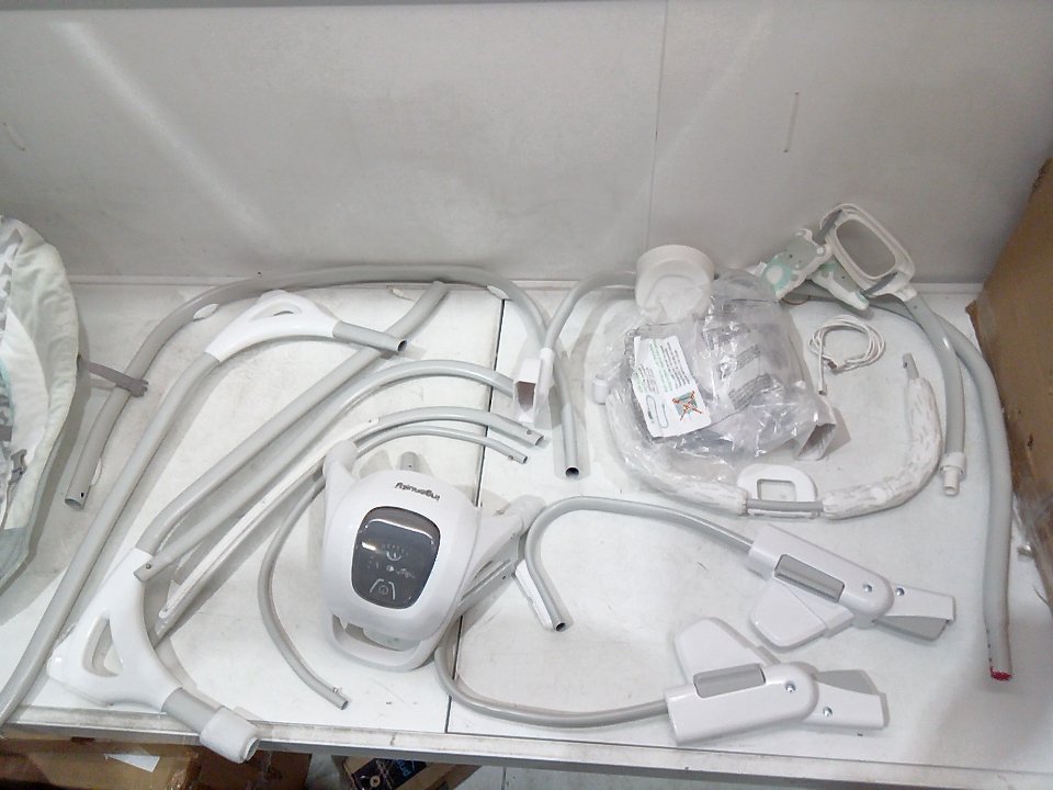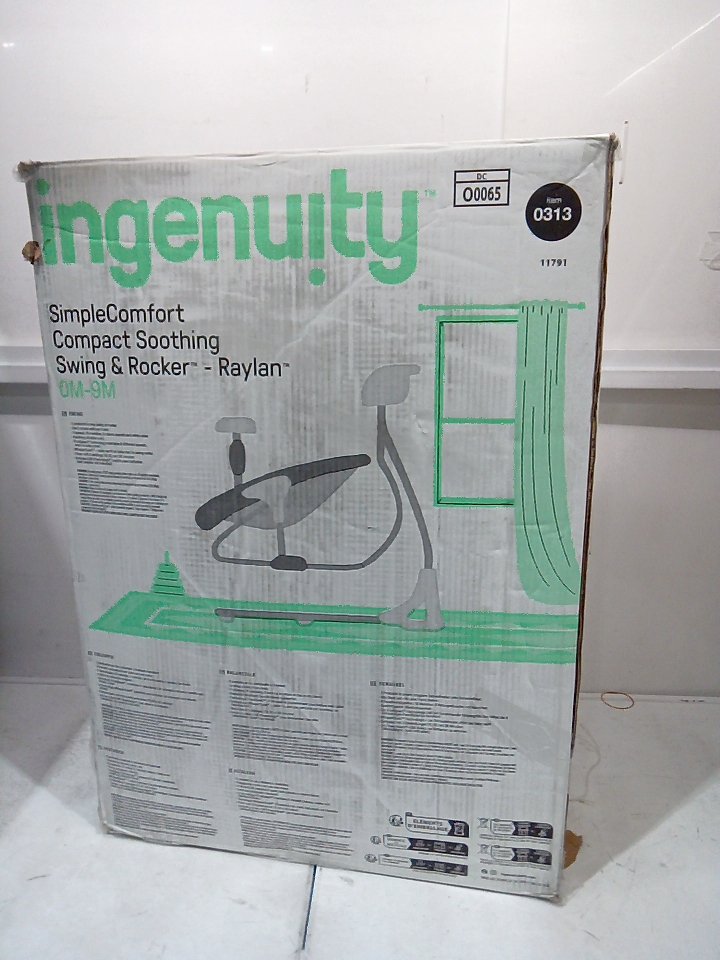 INFANT INGENUITY SIMPLECOMFORT CRADLING ROCKER PLUG-IN SWING WITH SOOTHING VIBRATIONS AND 6 SPEEDS - RAYLAN - WHITE/GREY (MODEL: 11791 0313)