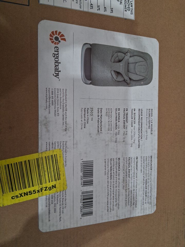 ERGOBABY EVOLVE 3-IN-1 ADJUSTABLE BOUNCER SEAT/CHAIR FOR NEWBORNS TO TODDLERS - 20LBS CAPACITY - LIGHT GREY (MODEL: EVLBNCLTGRYNA)