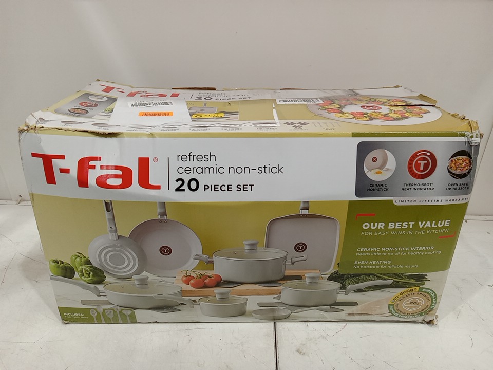 20PC t-fal refresh oven & broiler safe ceramic nonstick cookware set - up to 350° - teal