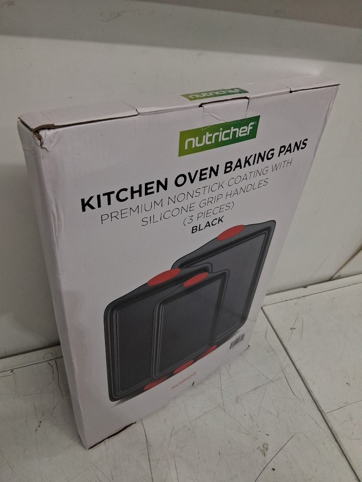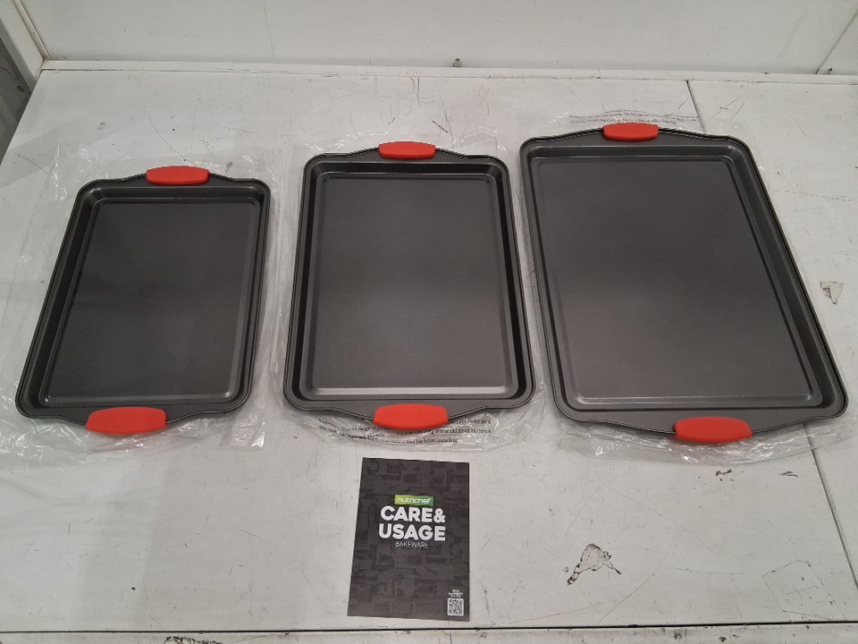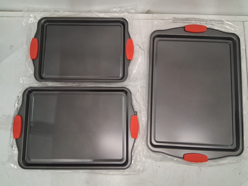 3PC NUTRICHEF DELUXE NON-STICK BAKE PAN SET WITH SILICONE HANDLES - Grey (Model: NCSBS3S)