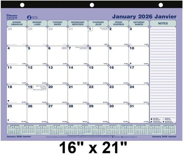Blueline 2026 Monthly Desk Pad Calendar - 16" X 21" - WHITE/BLUE