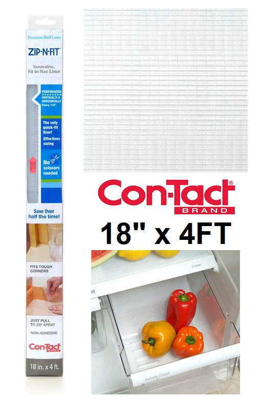 Con-Tact Zip-N-Fit Quick-Fit Non-Slip Solid Grip Shelf/Drawer Liner, 18" x 4FT - Clear