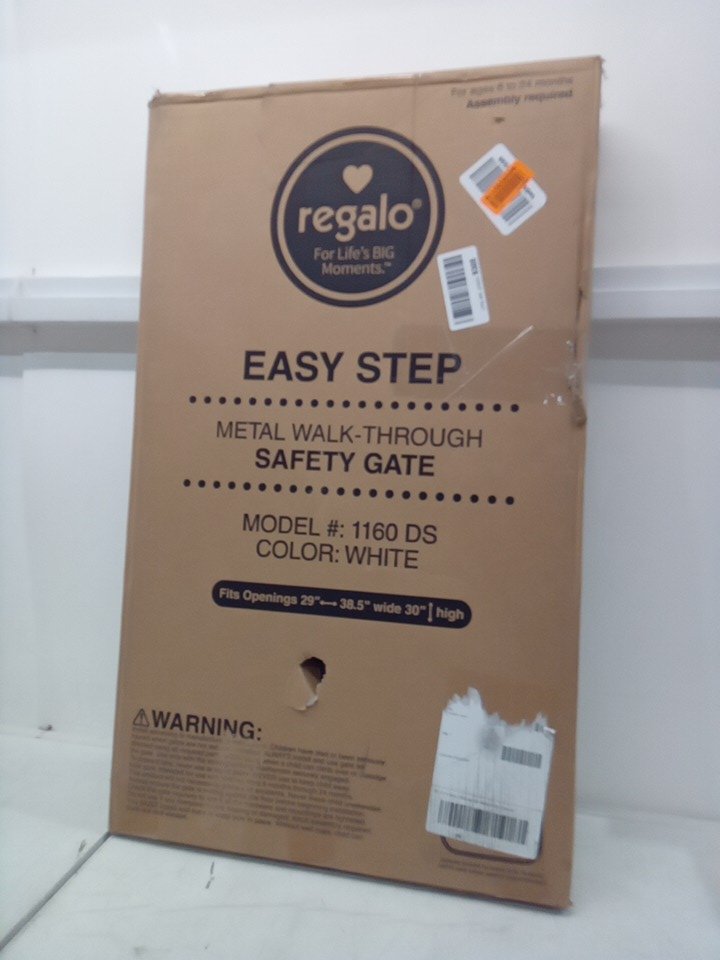 REGALO EASY-STEP METAL WALK-THROUGH SAFETY GATE - 30" x 29'' to 38.5'' - WHITE - (MODEL: 1160DS)