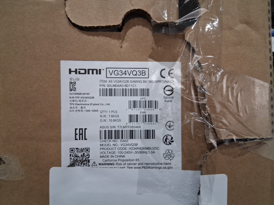 ASUS TUF Gaming 34" Curved HDR Monitor - WQHD (3440x1440), 165Hz, 1ms, Extreme Low Motion Blur, FreeSync Premium, Eye Care, DisplayPort HDMI USB, Height Adjustable, DisplayHDR 400 (MODEL: VG34VQL1B)