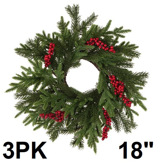 3pk worth imports artificial christmas wreaths - 18" - green/red