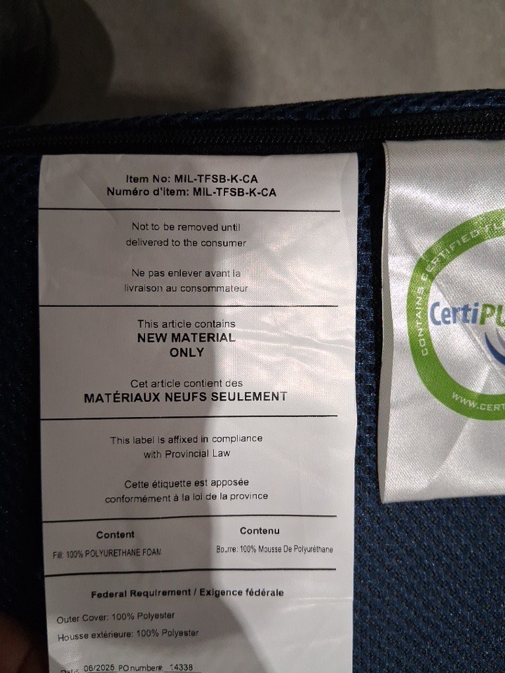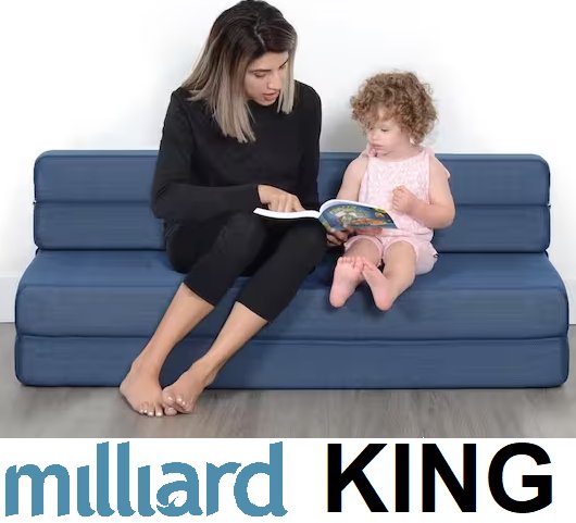 MILLIARD TRI-FOLD MATTRESS KING SIZE 78" x 77" x 4.5" - BLUE (MODEL: MIL-TFSB-K-CA)
