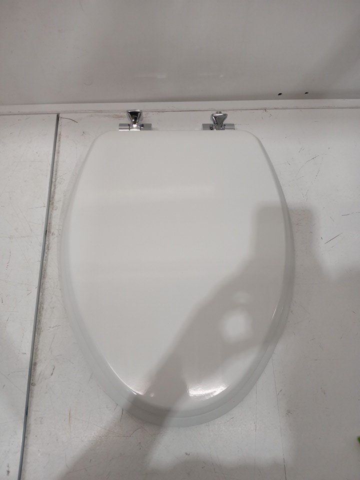 mayfair by bemis bennet enameled wood toilet seat - elongated - white (model: 1826CHSL 000)