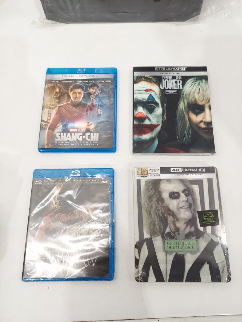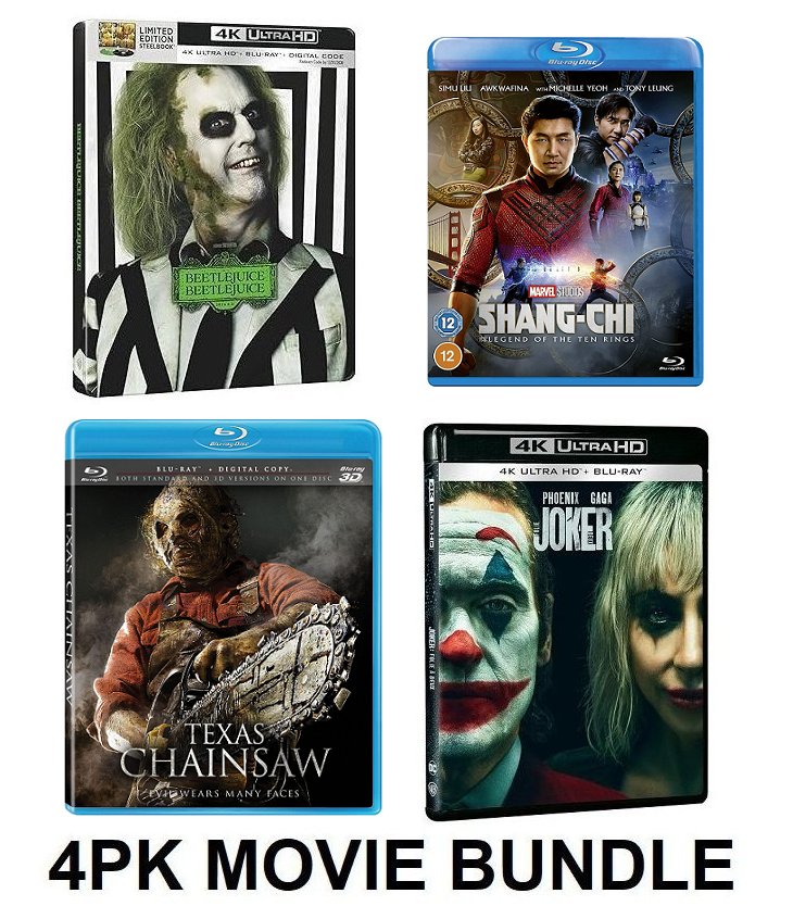 4pk BLU-RAY & 4K UHD SPOOKY/scary/ACTION MOVIE BUNDLE: Beetlejuice Beetlejuice, SHANG-CHI & THE LEGEND OF THE TEN RINGS, JOKER: FOLIE A DEUX, & TEXAS CHAINSAW