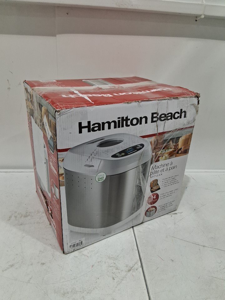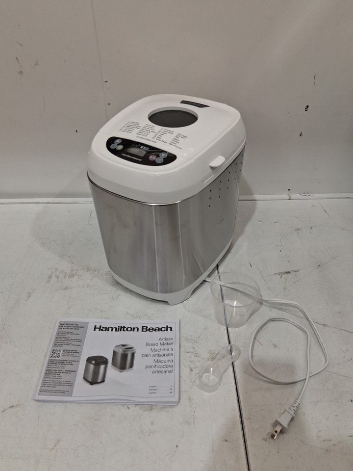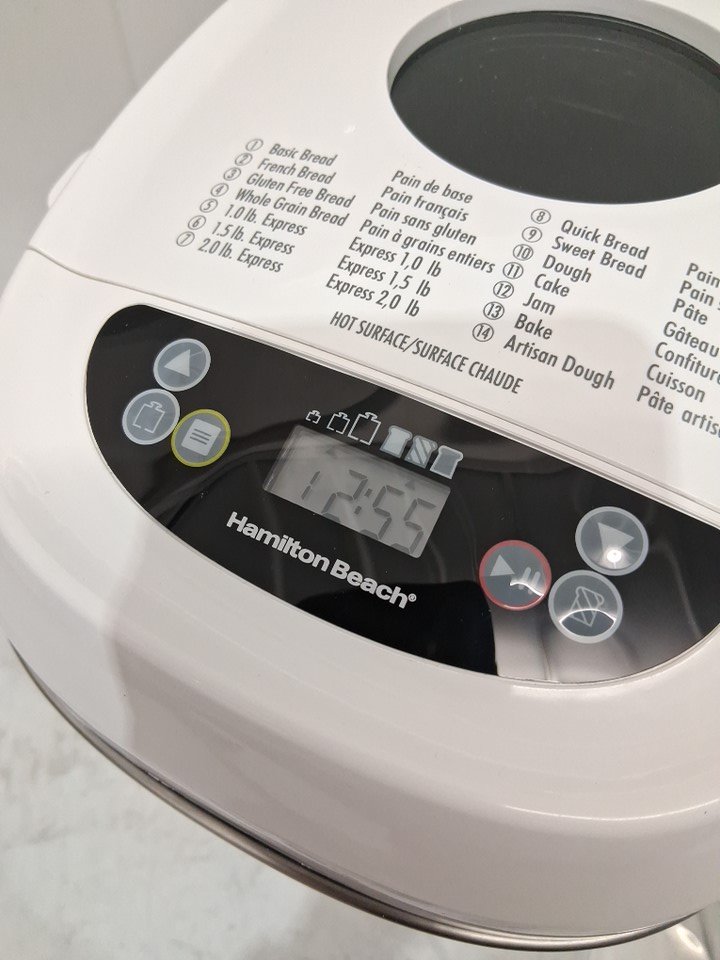 HAMILTON BEACH DIGITAL ELECTRIC BREAD MAKER MACHINE - ARTISAN AND GLUTEN FREE SETTINGS - 2LBS CAPACITY - 14 SETTINGS - WHITE/STAINLESS STEEL (MODEL: 29987MN)
