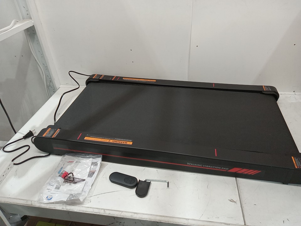 the treadmill has a bit of a smell to it, but other then that it turns on and works fine. please see photos