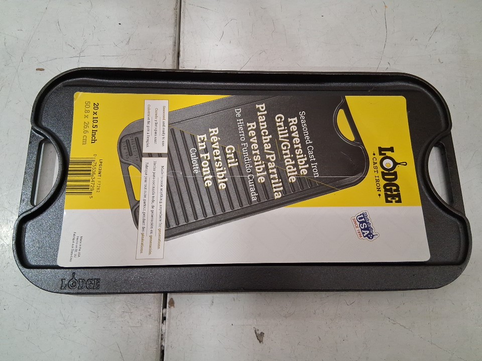 lodge cast iron griddle/grill with handles - 20" x 10.5" - black