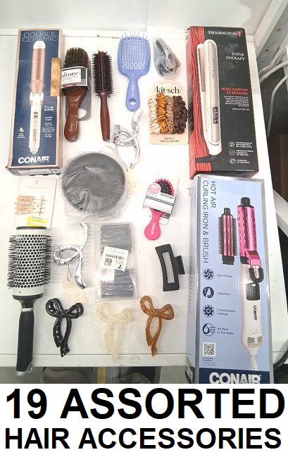 19 ASSORTED HAIR TOOLS & ACCESSORIES - STRAIGHTENER, CURLERS & HAIR CLIPS & HEADBANDS