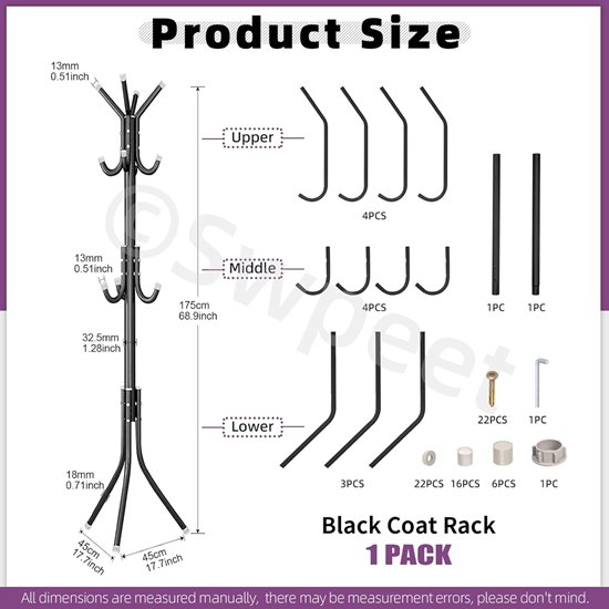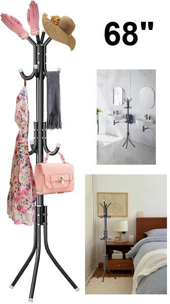 Swpeet Freestanding Adjustable Wooden Coat Tree stand Rack - 68" - black
