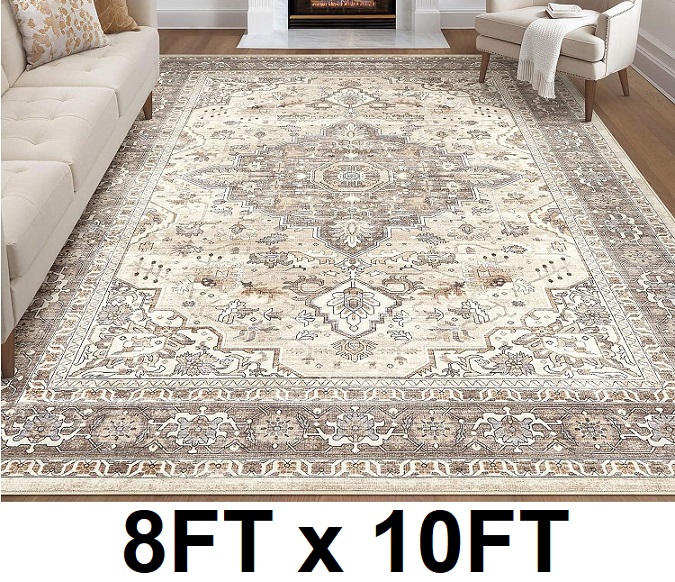 indoor non-slip Washable Boho Large Neutral Vintage Soft area Rug/carpet - 8FT x 10FT - beige/brown