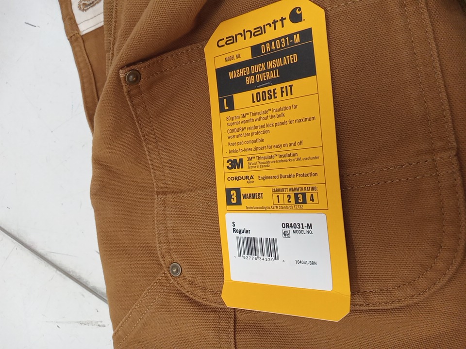 MEN'S CARHARTT RELAXED FIT WASHED DUCK INSULATED BIB OVERALLS - small - BROWN (MODEL: OR4031-M)
