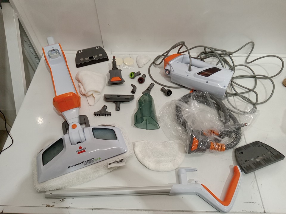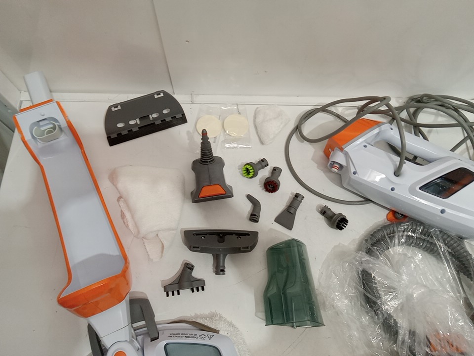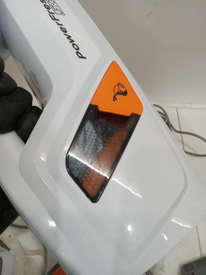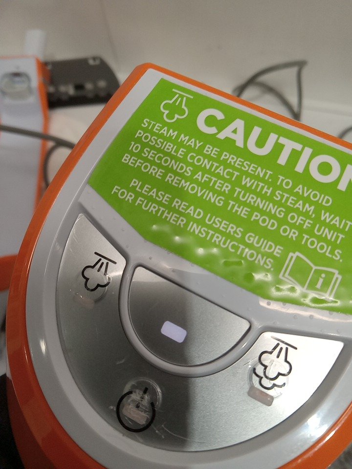 A couple light scuff marks/water residue on the main body of the mop. Tested for power only.