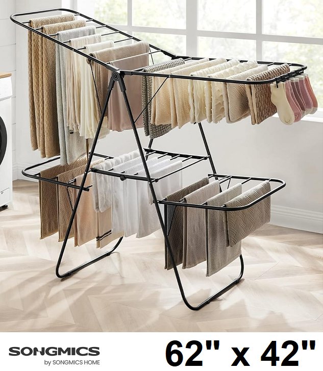 SONGMICS Foldable 2-Level Laundry Drying Rack with sock clips - 62" x 42" - black (model: ULLR053B01)