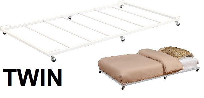 kings brand trundle bed frame for day beds - twin - white (model: tr02-w)