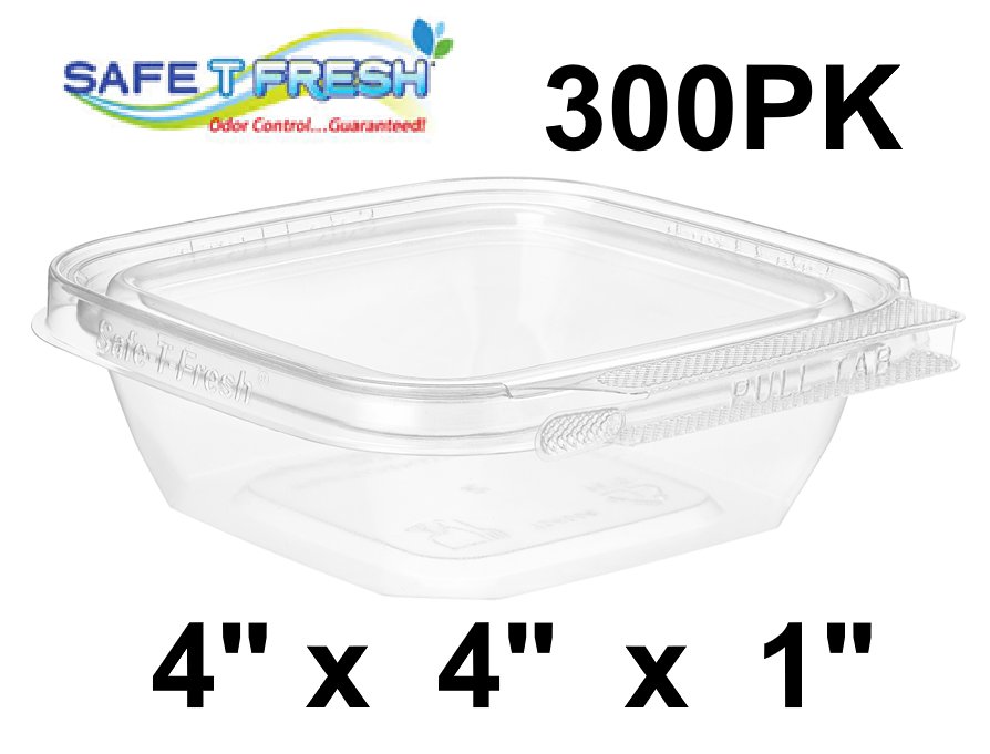 300PK SAFE-T-FRESH Tamper evident & tamper resistant clamshell, 4" X 4" X 1" - 8oz square - CLEAR (MODEL:TS4008)