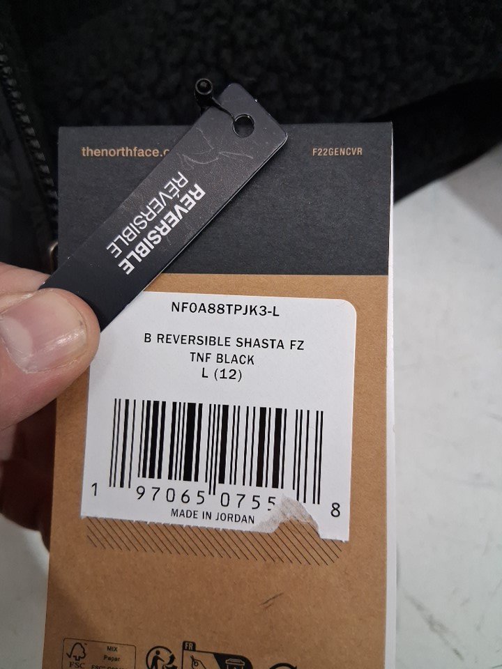 Boys The North Face reversible shasta full zip jacket with hood - Large (12) - Black (Style: nf0a88tpjk3-l)