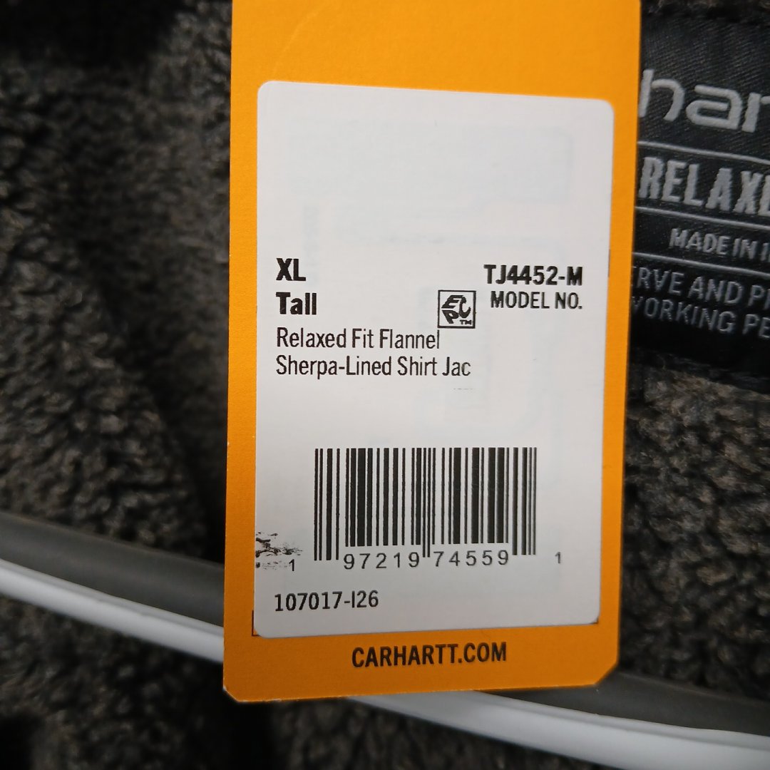 Men's Carhartt Relaxed Fit Heavyweight Flannel Sherpa-Lined Shirt Jac - XL, TALL - Dark Blue (Model: TJ4452-M)