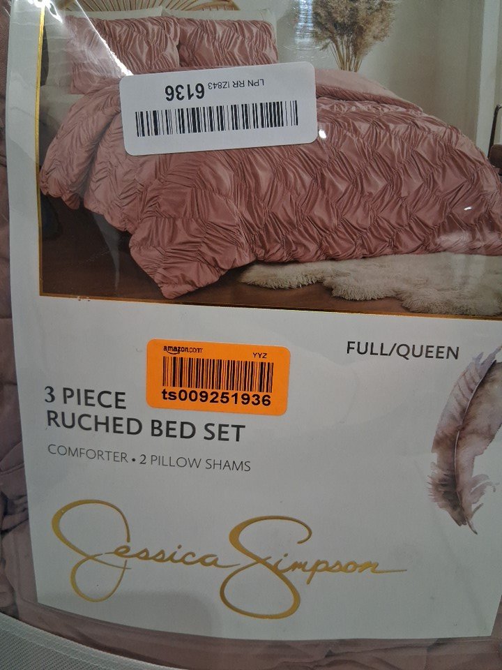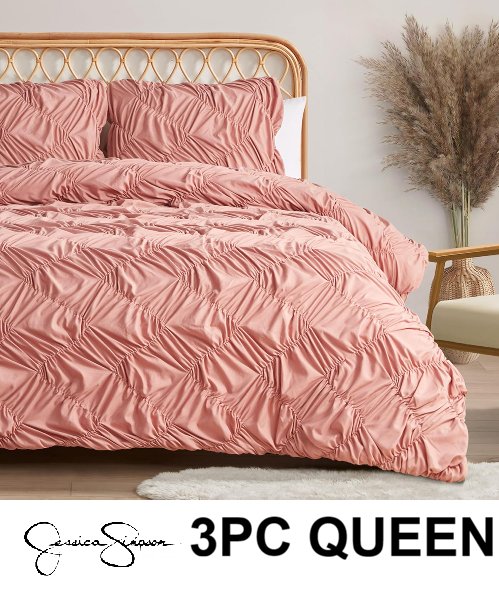 3PC JESSICA SIMPSON RUCHED BED SET - FULL/QUEEN - PINK