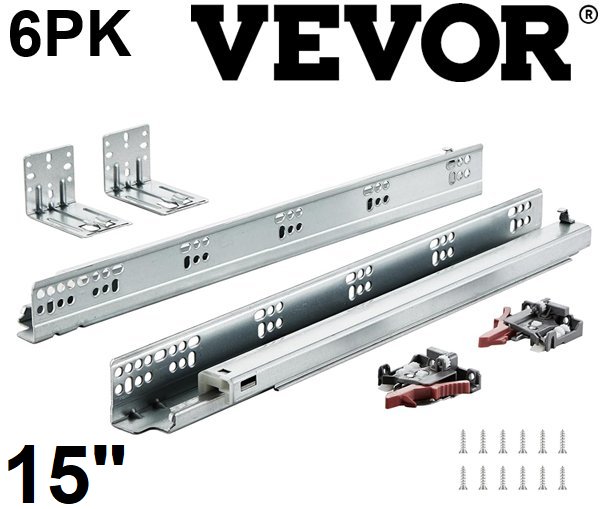 6PK vevor heavy duty extension drawer slides - 15" - silver/grey (model:30201b.381-6)
