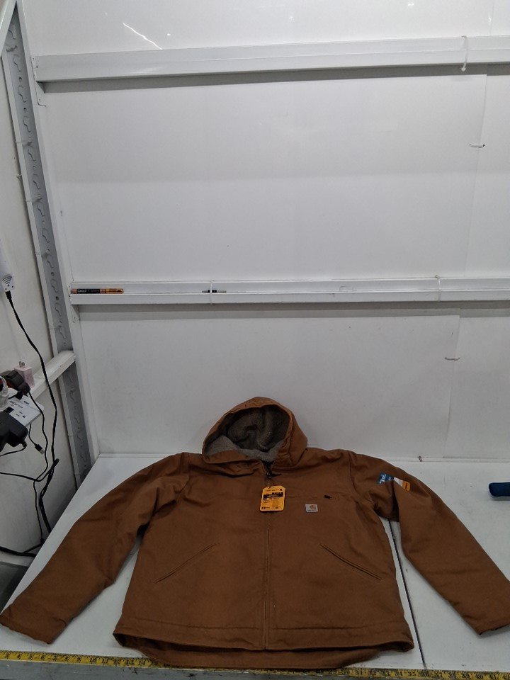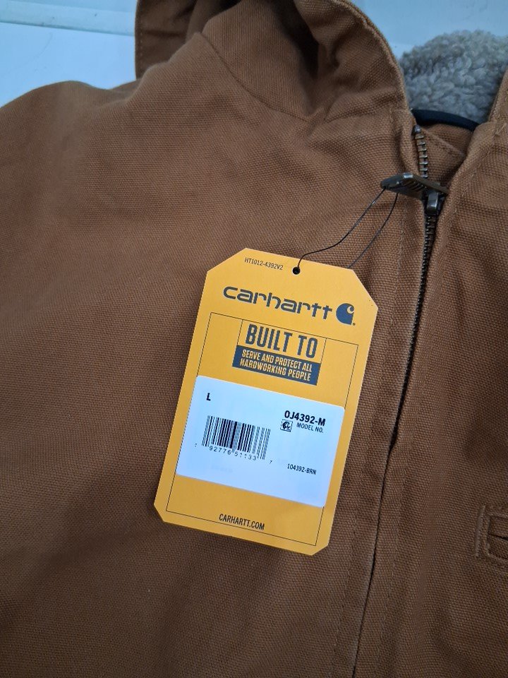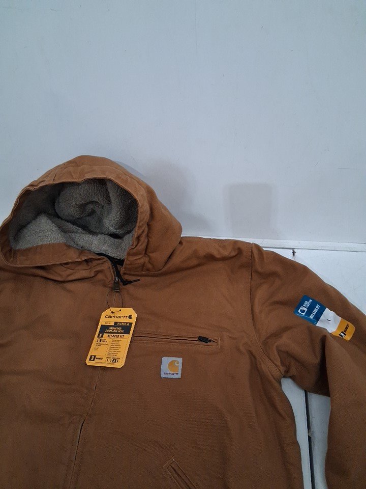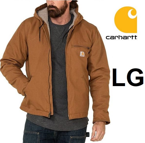 men's carhartt relaxed fit washed duck sherpa-lined jacket - large - carhartt brown - (style: oj4392-m).