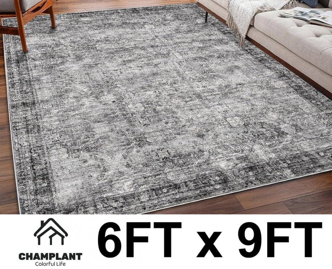CHAMPLANT Washable Non-Slip Vintage Traditional Area Rug Floor Cover - 6FT x 9FT - Dark Grey Pattern (Model: cp10-16)