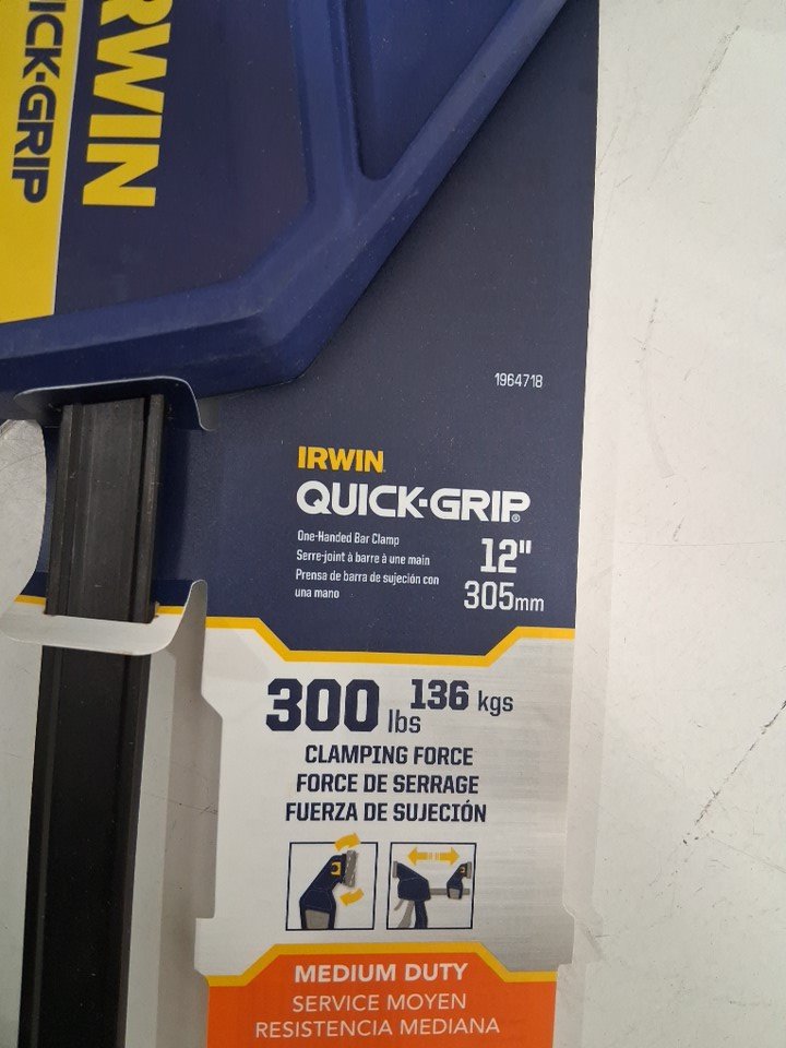 IRWIN QUICK-GRIP ONE-HANDED BAR CLAMP - 12" (MODEL#1964718)