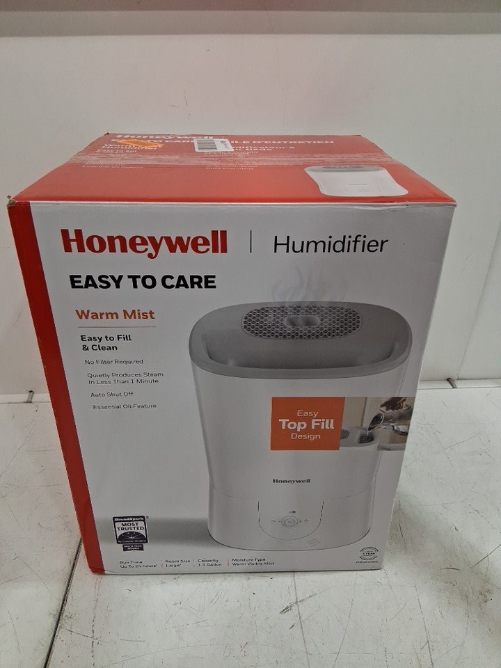 HONEYWELL TOP FILL WARM MIST HUMIDIFIER WITH ESSENTIAL OIL CUP - 1.5GAL CAPACITY - WHITE (MODEL: hwm440wc)