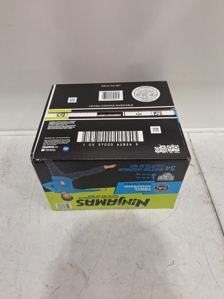 34PK UNISEX YOUTHS NINJAMAS NIGHTTIME UNDERWEAR WITH ODORMASK & ALL-NIGHT LEAK PROTECTION - LARGE - BLUE/GREEN/WHITE