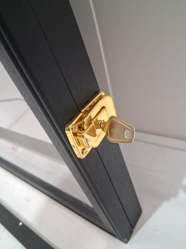 please note the product was discovered to have some scratches on the plexiglass along with some drywall dust on the screws, please see photos for more details