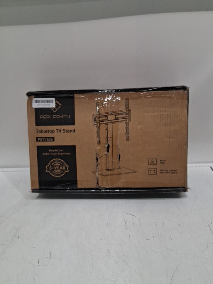 perlesmith Adjustable swivel tabletop tv stand for 32"–70" with Tempered Glass Base - 88lbs max - 15" x 15" - black (model: pstvs26)