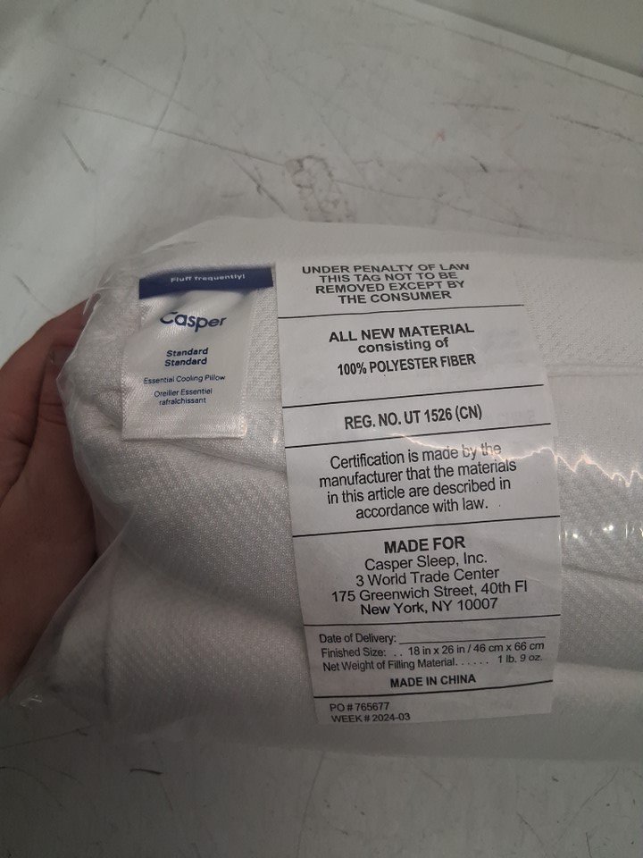 CASPER ESSENTIAL hybrid COOLING pillow - standard - 18" X 26" - WHITE