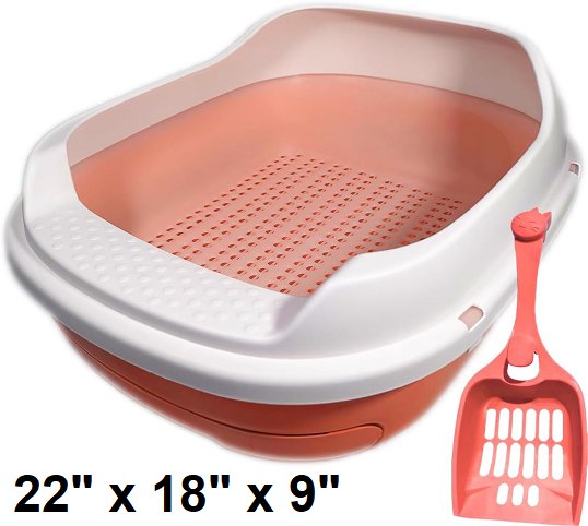 tom & sora creations small animal Pine Pellet Litter Box with Drawer - 22" x 18" x 9" - Coral