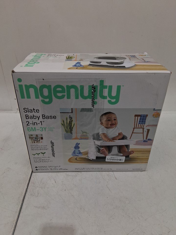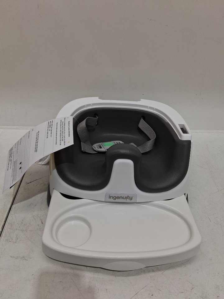 INGENUITY BABY BASE 2-IN-1 BOOSTER SEAT WITH FOOD & DRINK TRAY - 50LBS CAPACITY - WHITE/SLATE GREY (MODEL: 11576)