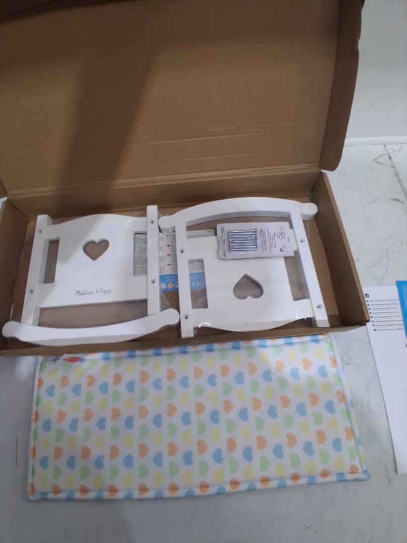 Melissa & Doug Mine to Love Wooden Play Cradle for Dolls, Stuffed Animals - 20.7"x11.79"x10.2" - white/hearts