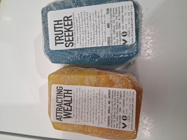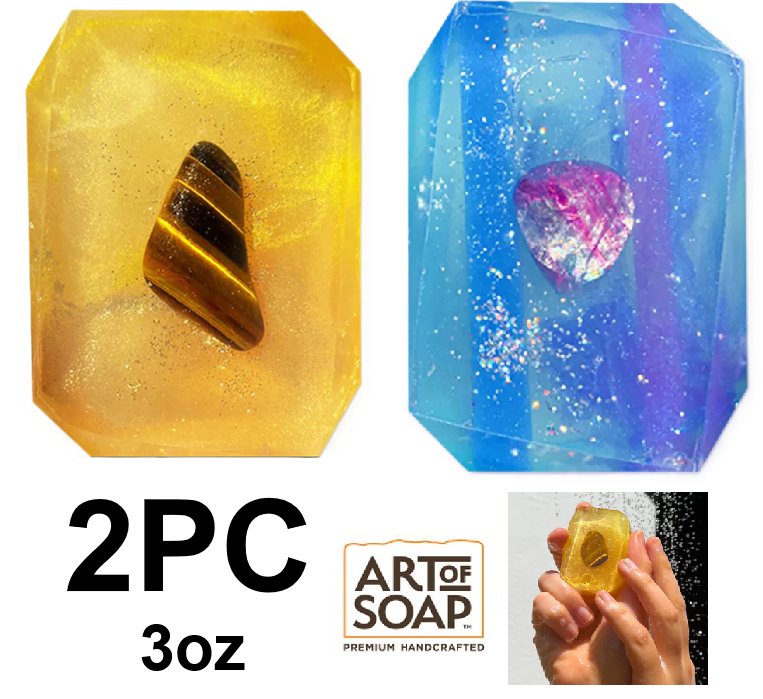 2PC The Art of Rest Crystal Bar Soap - attracting wealth with tiger eye and truth seeker with rainbow fluorite - 3oz each