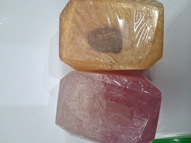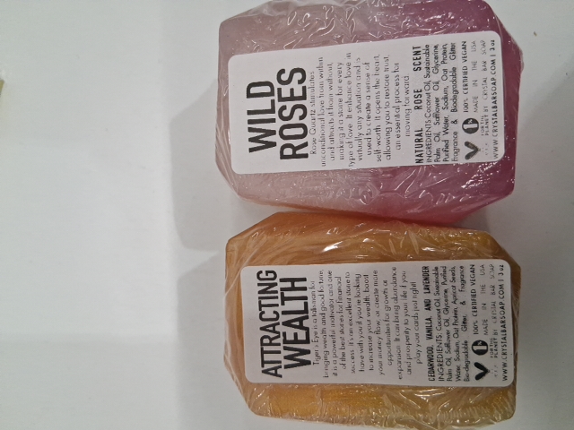 2PC The Art of Rest Crystal Bar Soap - attracting wealth with tiger eye and wild roses with rose quartz - 3oz each